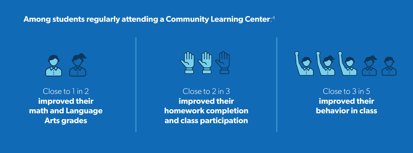 Only 1 in 3 requests for funding Community Learning Centers is awarded. Over the last 10 years, $4 billion in local grant requests were denied because of intense competition and lack of adequate federal funding.